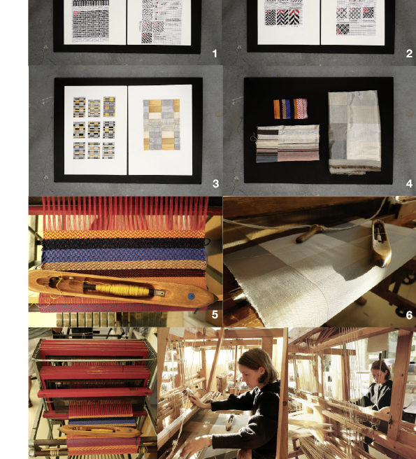 (1, 2 + 3) Aufzeichnungen aus dem Kurs, Bindungslehre und Zeichnungen von Webpatronen (4) Webproben (5 + 7) Erprobungen am Tastenwebstuhl (6, 8 + 9) Doppelwebstuhl, ich webe nach einem eigenen Entwurf ein Gewebe WEBEN Um das Handwerk und das System des Webens im Ganzen zu begreifen, wollte ich selbst …